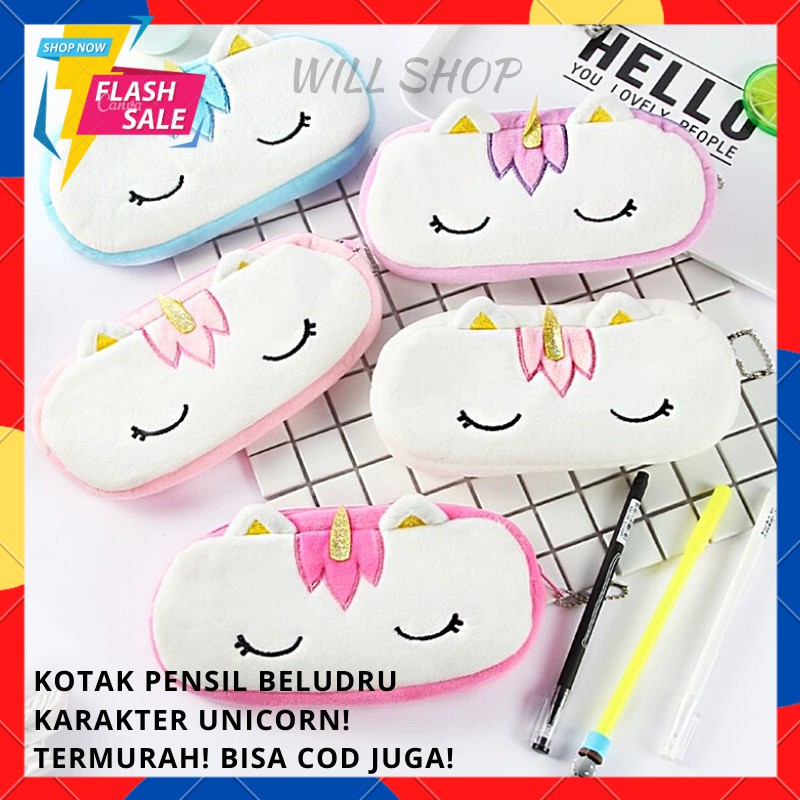 READY STOCK KOTAK PENSIL BELUDRU SUEDE BERKARAKTER UNICORN KUDA PONY LUCU UNIK TERMURAH BISA COD
